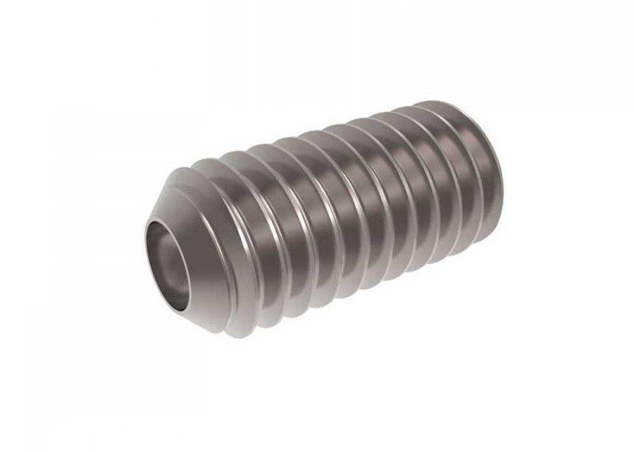 - DIN 914. Металлический стержень с коническим концом и резьбой на всю длину. Коническая форма торца обеспечивает надежную фиксацию деталей, упрощает проведение монтажных работ. Размерность резьбы – от М2 до М20.
