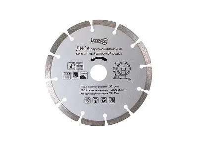 Алмазные диски предназначены для сухой и мокрой обработки прочных строительных и отделочных материалов: бетона, камня, кирпича, мрамора, гранита, черепицы, гипсовых плит, асбеста, шифера, керамики. Диски с алмазным напылением эффективнее абразивного инструмента за счет постоянного диаметра, обеспечивающего стабильную глубину резания, и особой конструкции, позволяющей выполнять работу быстрее и эффективнее. Утолщенная ступица и усиленная основа предотвращают изгибание и деформирование инструмента во время обработки твердых материалов. Промежутки между сегментами и перфорация обеспечивают удаление пыли и шлама из зоны резания.