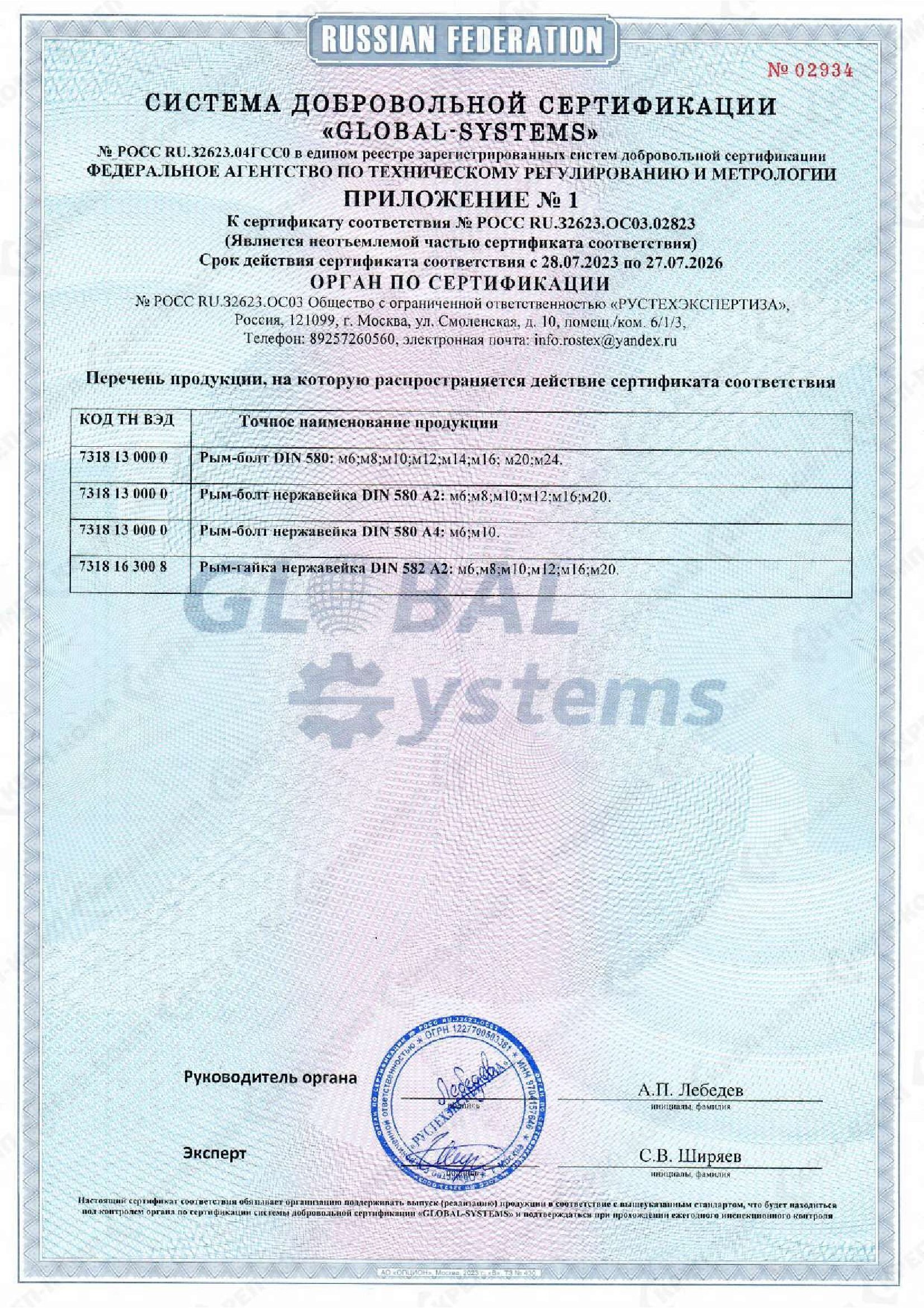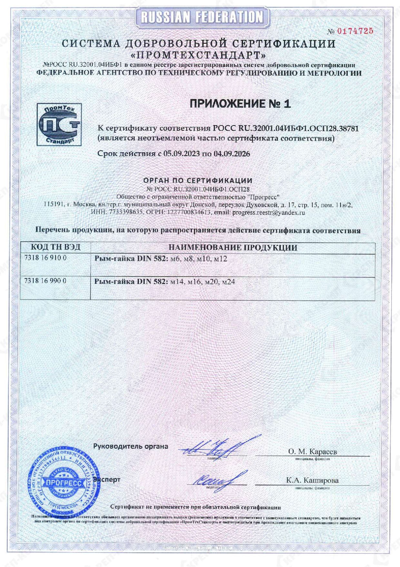 • Сертификат соответствия на такелаж