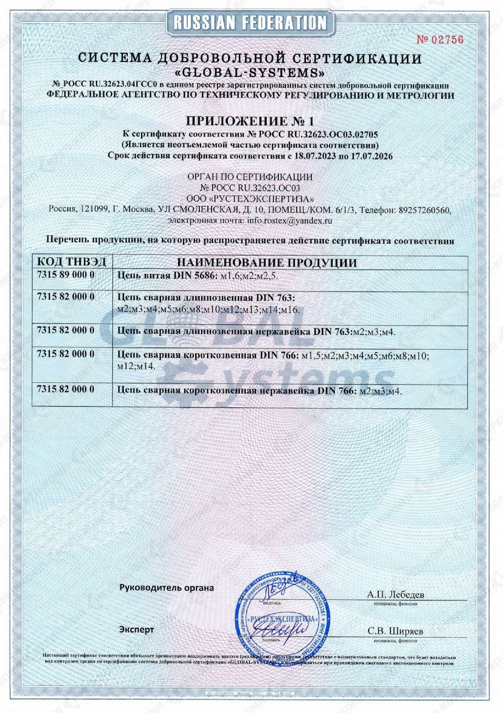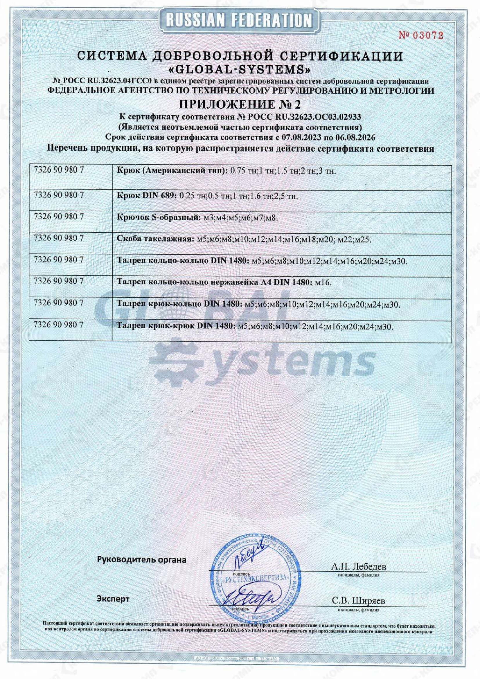• Скачать Сертификат соответствия на такелаж